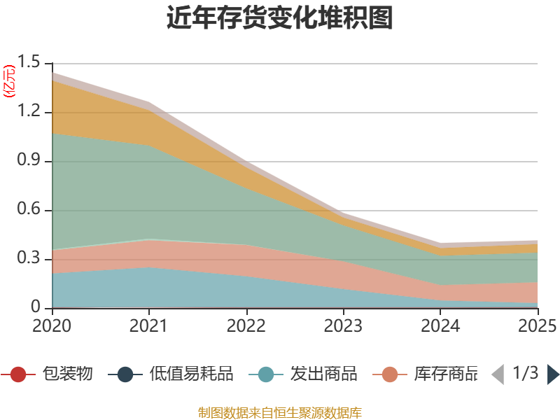 从存货变动来看,截至2025年末,公司存货账面价值为4134.52万元,占净资产的9.34%,较上年末增加164.7万元。其中,存货跌价准备为2084.92万元,计提比例为33.52%。