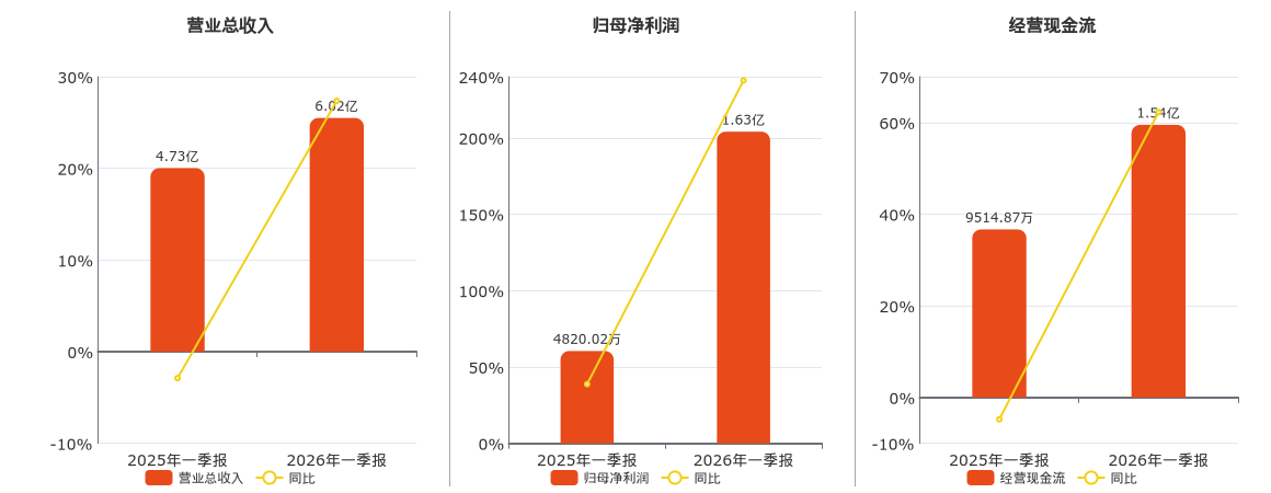公司营业总收入为6.02亿元。归母净利润为1.63亿元。经营活动现金净流入为1.54亿元。