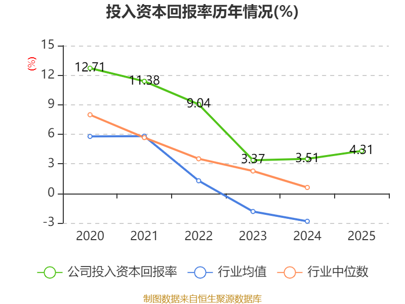 数据显示,2025年公司加权平均净资产收益率为4.48%,较上年同期上升0.25个百分点。公司2025年投入资本回报率为4.31%,较上年同期上升0.8个百分点。