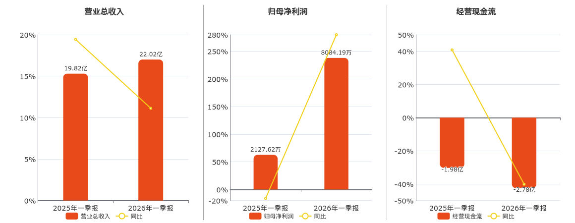 公司营业总收入为22.02亿元。归母净利润为8084.19万元。经营活动现金净流入为-2.78亿元,较去年同报告期经营活动现金净流入减少7958.56万元。