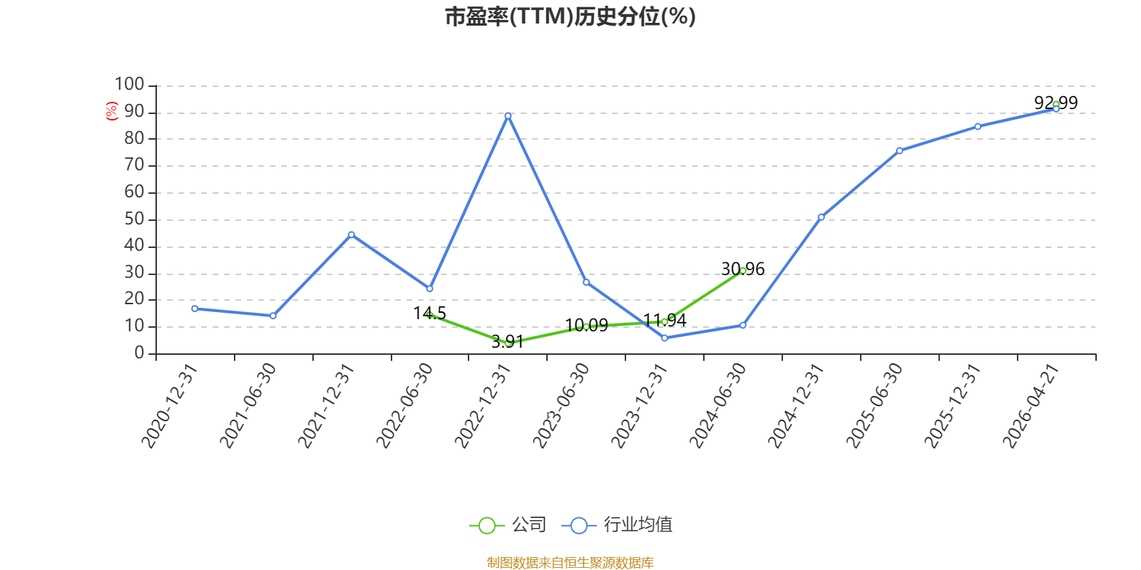 市盈率、市净率为负时,不显示当期分位数,会导致折线图中断。