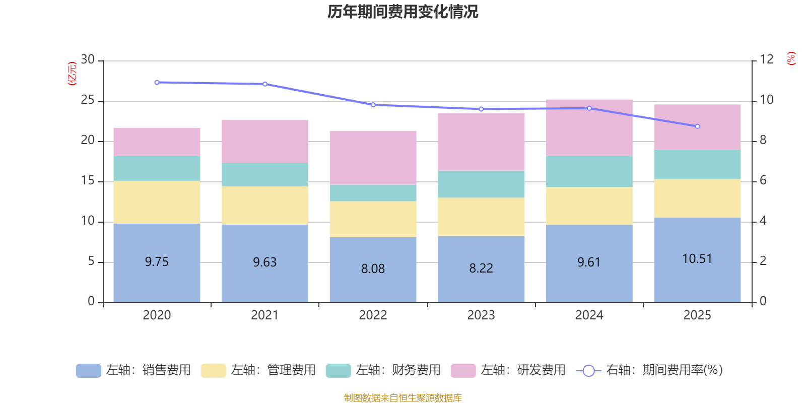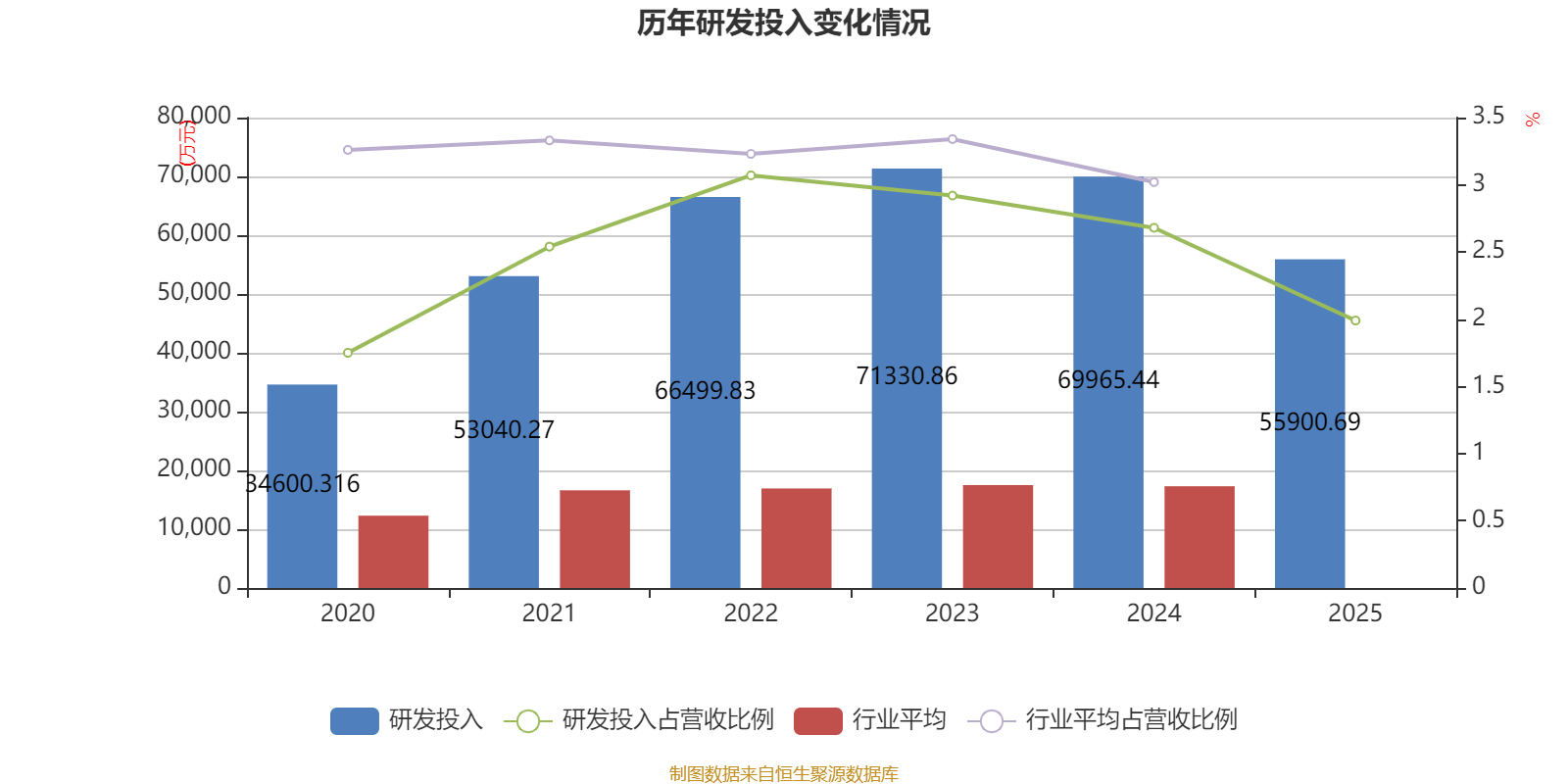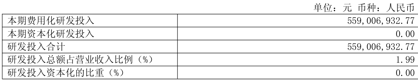 2025年全年,公司研发投入金额为5.59亿元,同比下降20.1%;研发投入占营业收入比例为1.99%,相比上年同期下降0.69个百分点。此外,公司全年研发投入资本化率为0%。