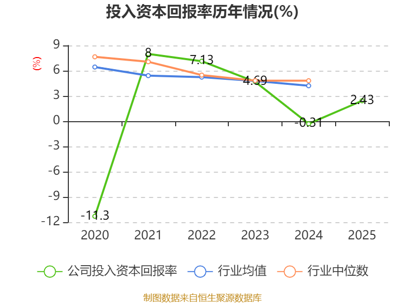数据显示,2025年公司加权平均净资产收益率为1.39%,较上年同期上升8.54个百分点。公司2025年投入资本回报率为2.43%,较上年同期上升2.74个百分点。