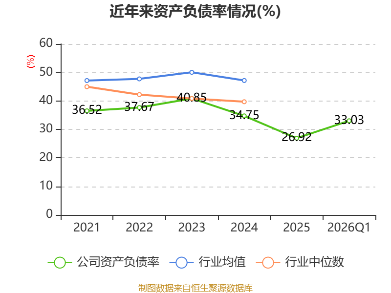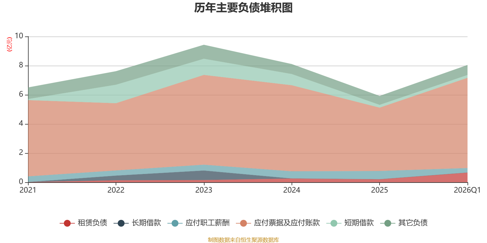 负债重大变化方面,截至2026年一季度末,公司应付票据及应付账款较上年末增加42.61%,占公司总资产比重上升5.68个百分点;租赁负债较上年末增加225.98%,占公司总资产比重上升1.79个百分点;应付职工薪酬较上年末减少45.16%,占公司总资产比重下降1.31个百分点;合同负债较上年末增加87.65%,占公司总资产比重上升0.14个百分点。