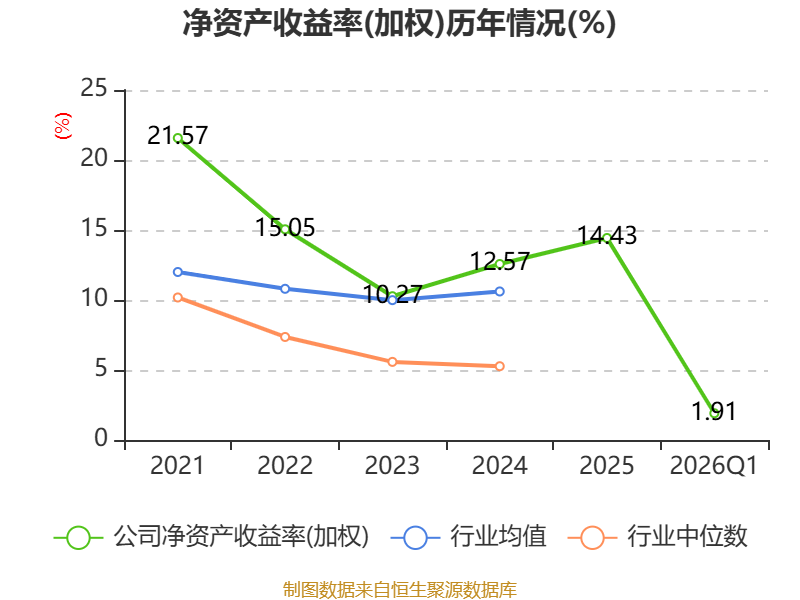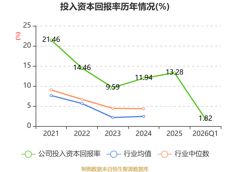 盈利能力方面, 2026年一季度公司加权平均净资产收益率为1.91%,同比下降0.83个百分点。公司2026年第一季度投入资本回报率为1.82%,较上年同期下降0.78个百分点。