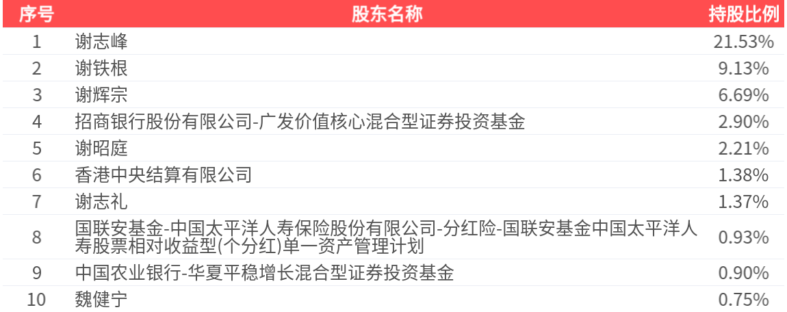 公司股东户数为2.57万户,前十大股东持股数量为4.10亿股,占总股本比例为47.78%,前十大股东持股情况如下: