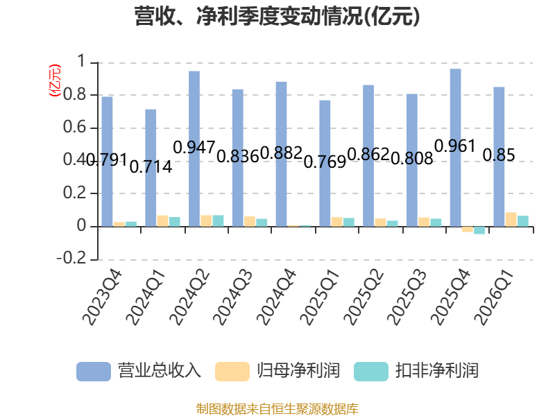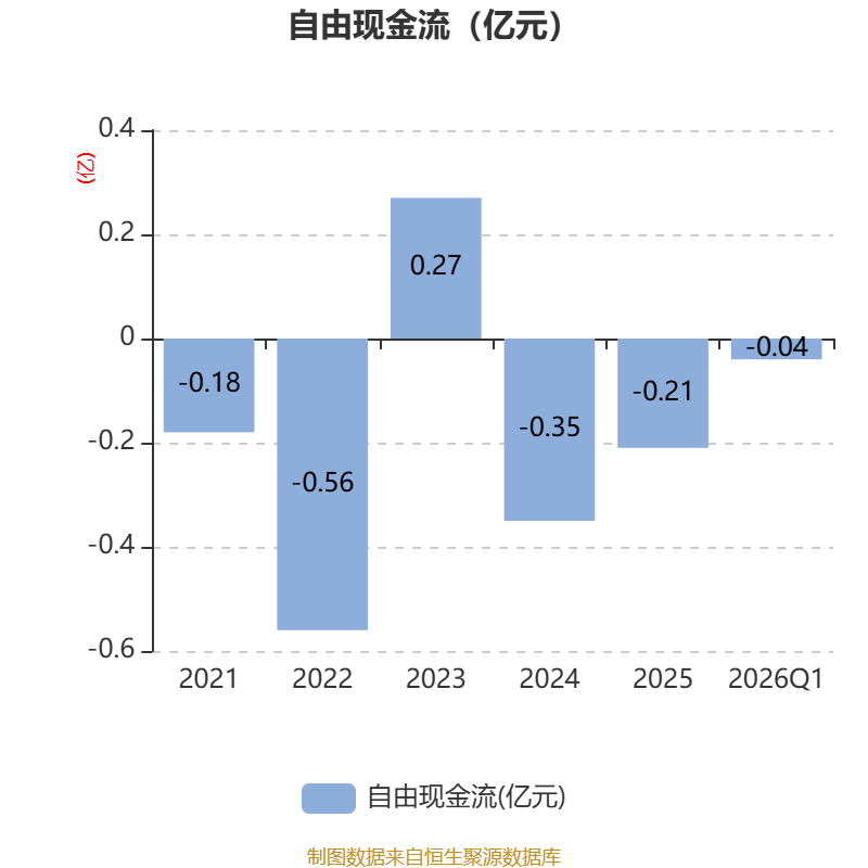 截至2026年一季度末,公司经营活动现金流净额为780.22万元,同比下降50.53%;筹资活动现金流净额-43.4万元,同比减少830.67万元;投资活动现金流净额-493.94万元,上年同期为-289.88万元。