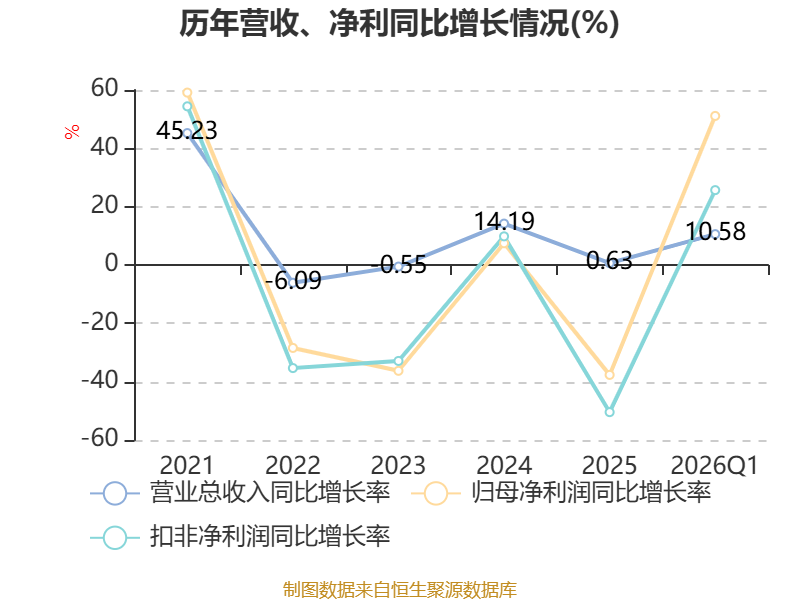 资产重大变化方面,截至2026年一季度末,公司固定资产较上年末减少2.77%,占公司总资产比重下降2.62个百分点;存货较上年末增加25.27%,占公司总资产比重上升2.5个百分点;交易性金融资产合计较上年末增加10.98%,占公司总资产比重上升0.81个百分点;应收票据及应收账款较上年末增加0.39%,占公司总资产比重下降0.53个百分点。
