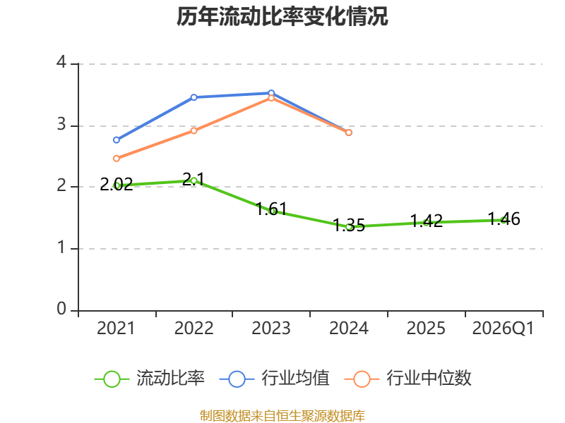 2026年第一季度,公司流动比率为1.46,速动比率为1.05。