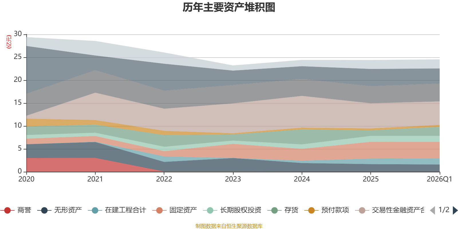 资产重大变化方面,截至2026年一季度末,公司存货较上年末增加63.13%,占公司总资产比重上升3.07个百分点;货币资金较上年末减少11.75%,占公司总资产比重下降1.87个百分点;交易性金融资产合计较上年末减少6.26%,占公司总资产比重下降1.53个百分点;在建工程合计较上年末增加12.31%,占公司总资产比重上升0.58个百分点。