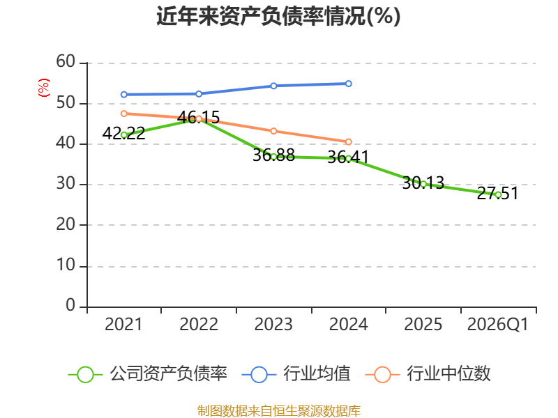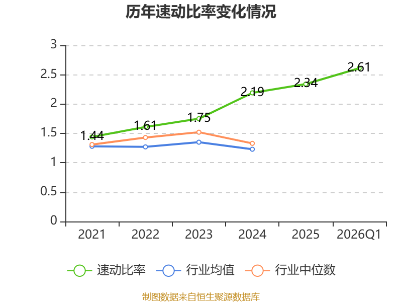 2026年第一季度,公司流动比率为3.03,速动比率为2.61。