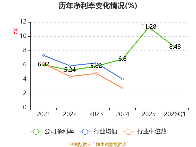 资产重大变化方面,截至2026年一季度末,公司货币资金较上年末减少36.13%,占公司总资产比重下降4.4个百分点;交易性金融资产合计占公司总资产的2.08%,上年末为0;其他应收款(含利息和股利)较上年末减少40.44%,占公司总资产比重下降1.67个百分点;预付款项较上年末增加14.62%,占公司总资产比重上升1.33个百分点。