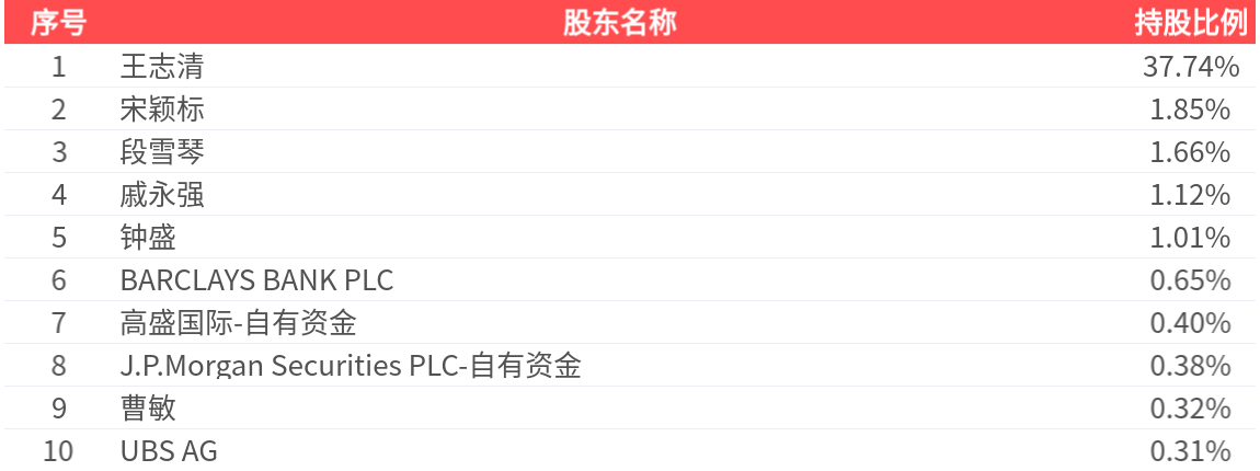 公司股东户数为3.50万户,前十大股东持股数量为1.15亿股,占总股本比例为45.46%,前十大股东持股情况如下: