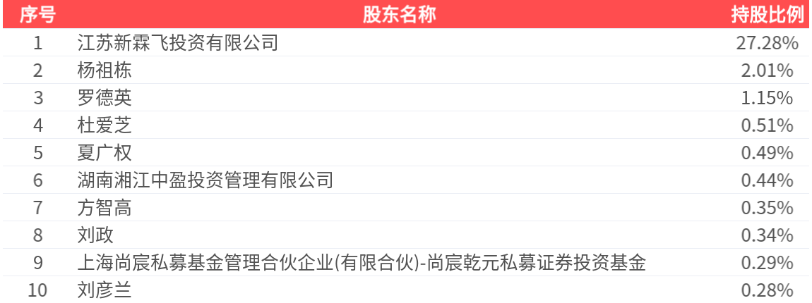 公司股东户数为2.53万户,前十大股东持股数量为6572.14万股,占总股本比例为33.15%,前十大股东持股情况如下: