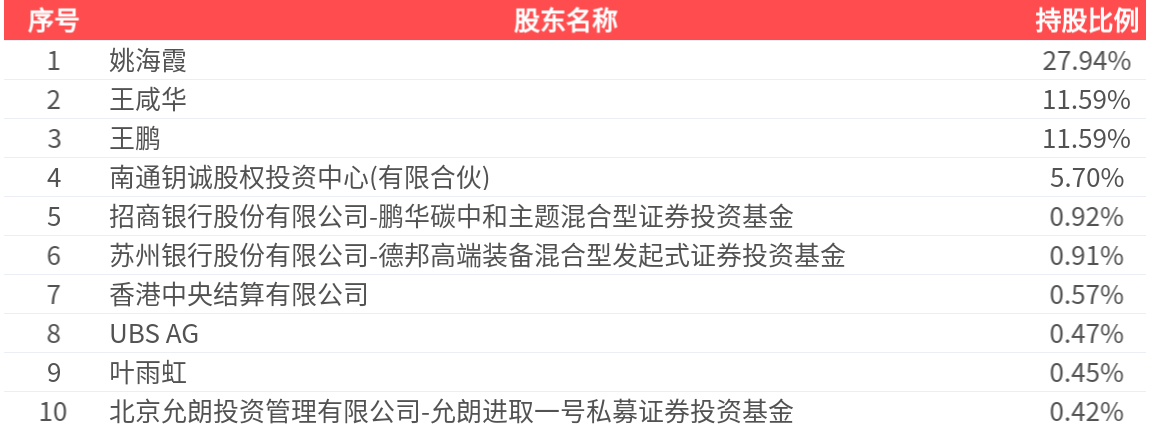 公司股东户数为1.39万户,前十大股东持股数量为1.05亿股,占总股本比例为60.55%,前十大股东持股情况如下: