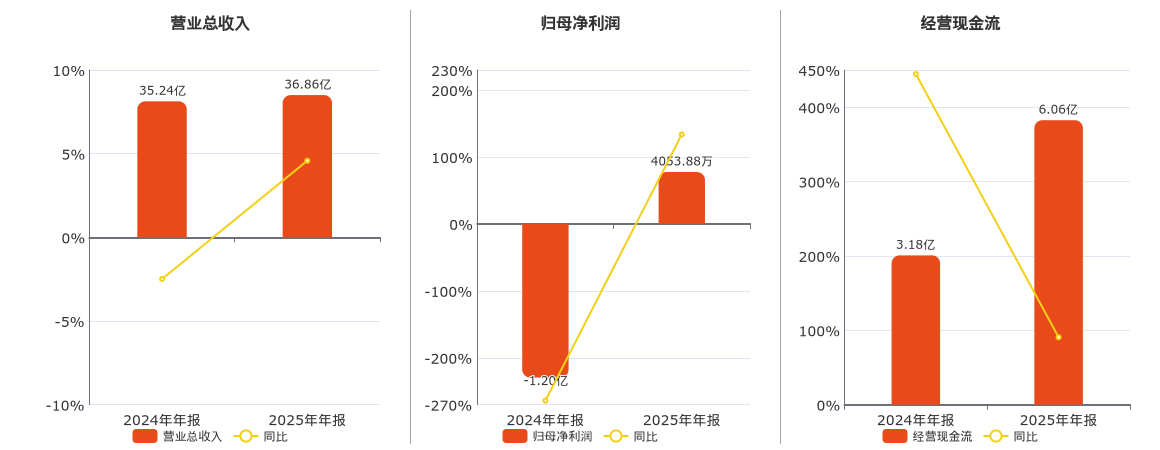 公司营业总收入为36.86亿元,在已披露的同业公司中排名第22。归母净利润为4053.88万元,在已披露的同业公司中排名第19。经营活动现金净流入为6.06亿元。