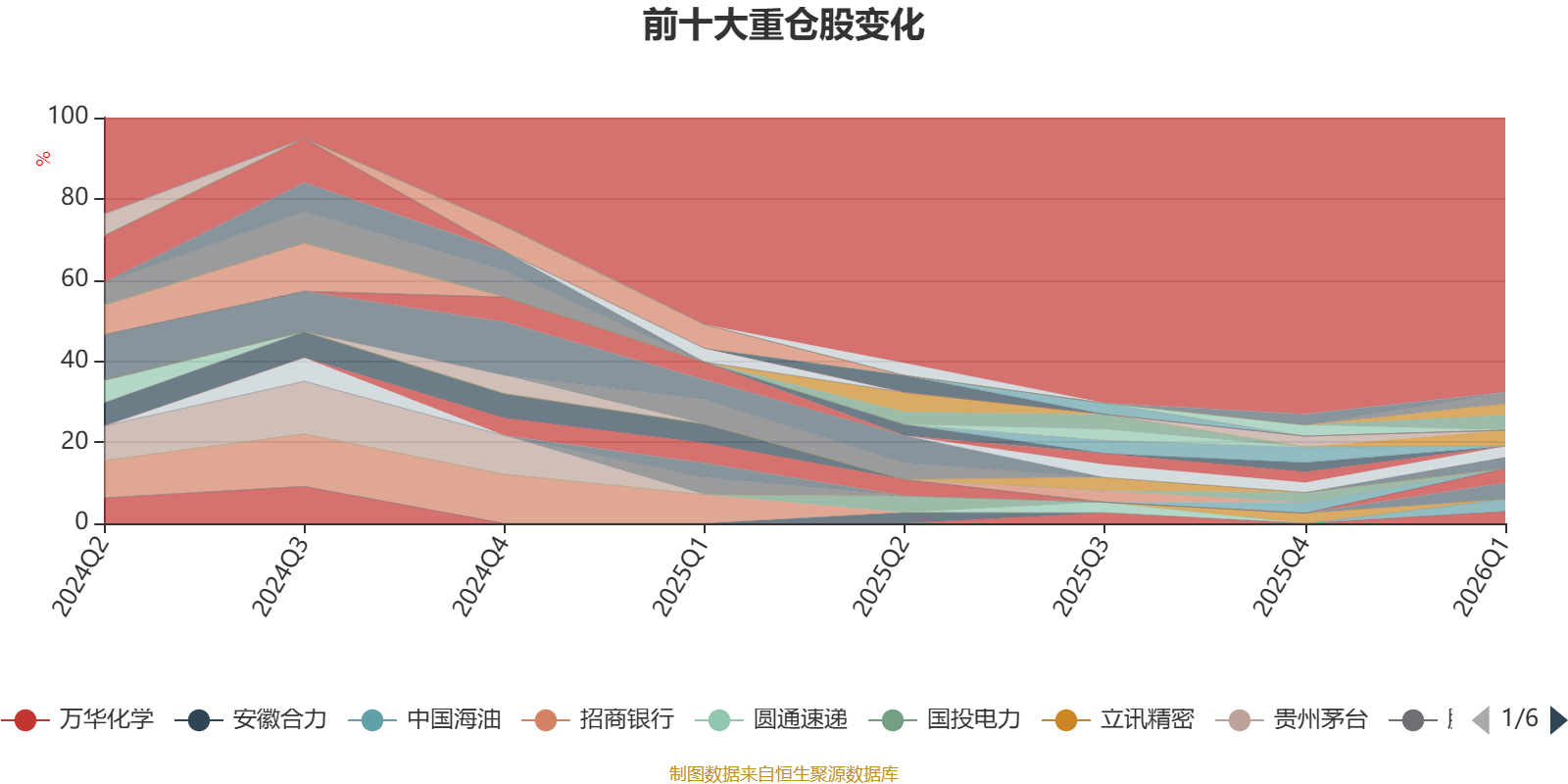 截至2026年一季度末,基金十大重仓股分别是潍柴动力、江苏银行、渝农商行、久立特材、中国海油、万华化学、成都银行、长江电力、比亚迪、阿里巴巴-W。