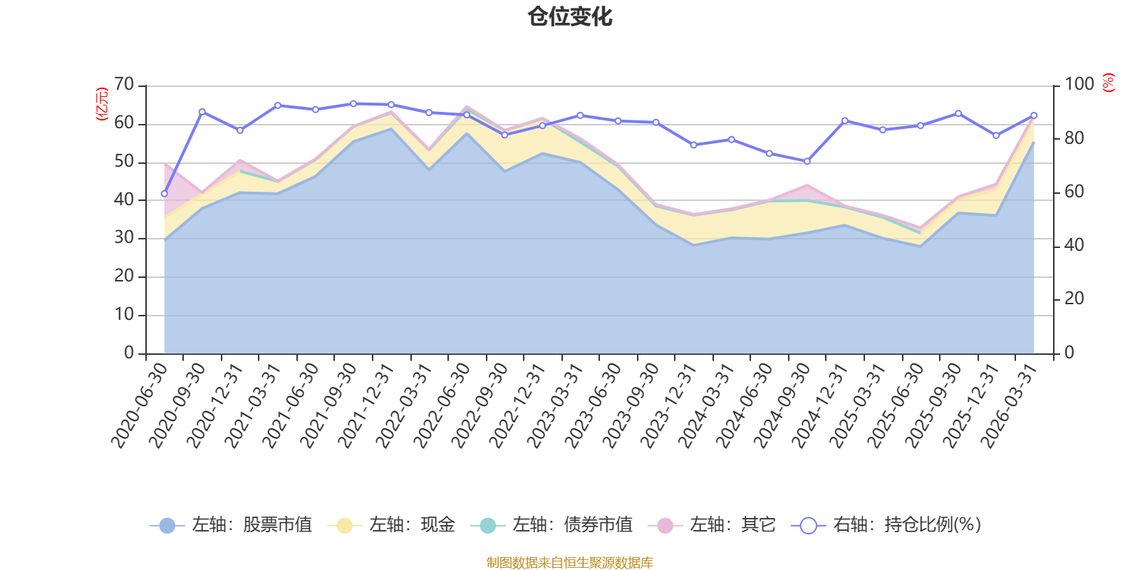 截至2026年一季度末,基金十大重仓股分别是中际旭创、新易盛、三环集团、亨通光电、吉利汽车、中天科技、宁德时代、中国石油股份、中国黄金国际、北方华创。