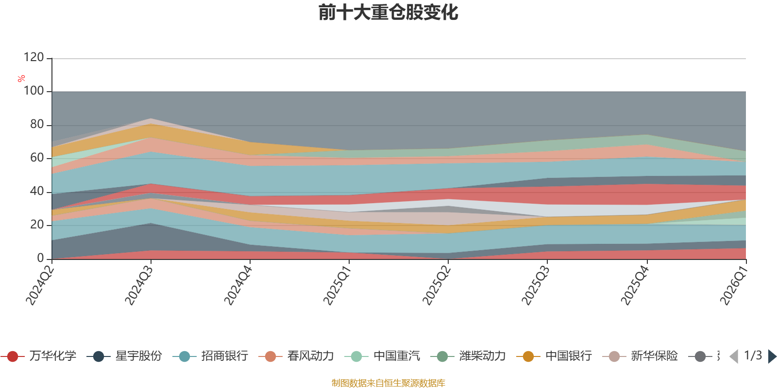 该基金持股集中度较高,近2年前十大重仓股集中度长期超过60%。截至2026年一季度末,基金十大重仓股分别是招商银行、紫金矿业、华峰铝业、中国银行、三一重工、万华化学、宁德时代、星宇股份、中国重汽、潍柴动力。
