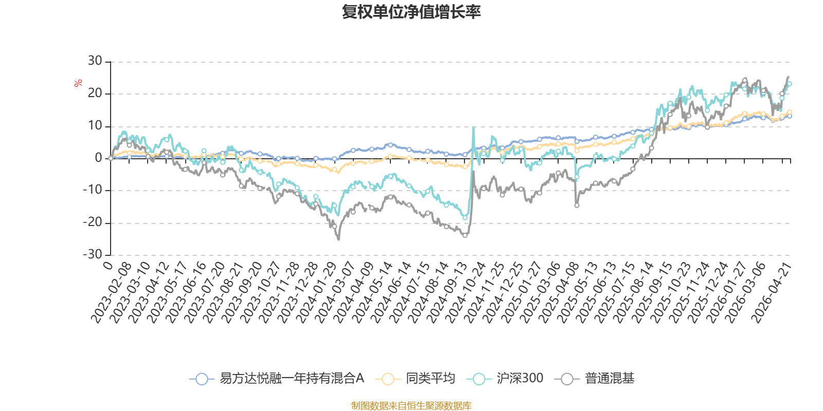 截至4月21日,易方达悦融一年持有混合A近三个月复权单位净值增长率为1.43%,位于同类可比基金128/629;近半年复权单位净值增长率为3.31%,位于同类可比基金211/629;近一年复权单位净值增长率为7.25%,位于同类可比基金325/629;近三年复权单位净值增长率为12.58%,位于同类可比基金275/582。