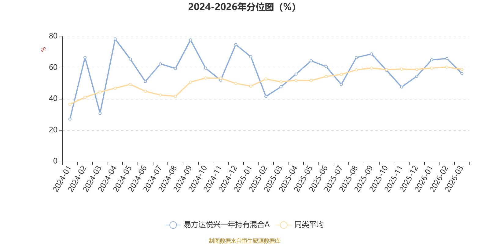 通过所选区间该基金净值增长率分位图,可以观察该基金与同类基金业绩比较情况。图为坐标原点到区间内某时点的净值增长率在同类基金中的分位数。