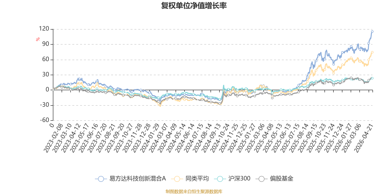 截至4月21日,易方达科技创新混合A近三个月复权单位净值增长率为18.99%,位于同类可比基金43/229;近半年复权单位净值增长率为31.29%,位于同类可比基金65/229;近一年复权单位净值增长率为126.12%,位于同类可比基金44/229;近三年复权单位净值增长率为81.89%,位于同类可比基金55/172。