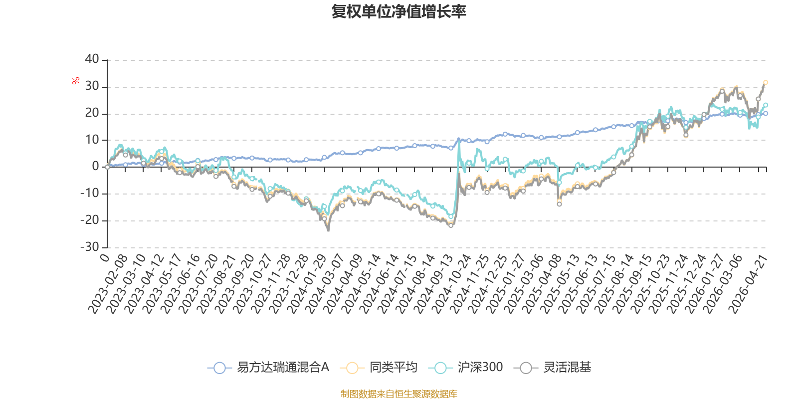 截至4月21日,易方达瑞通混合A近三个月复权单位净值增长率为0.33%,位于同类可比基金687/1287;近半年复权单位净值增长率为2.32%,位于同类可比基金936/1286;近一年复权单位净值增长率为7.41%,位于同类可比基金1098/1286;近三年复权单位净值增长率为18.35%,位于同类可比基金654/1286。