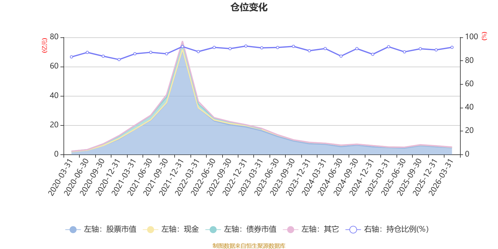 据定期报告数据统计,近三年平均股票仓位为89.44%,同类平均为72.56%。2022年末基金达到92.58%的最高仓位,2020年末最低,为81.05%。