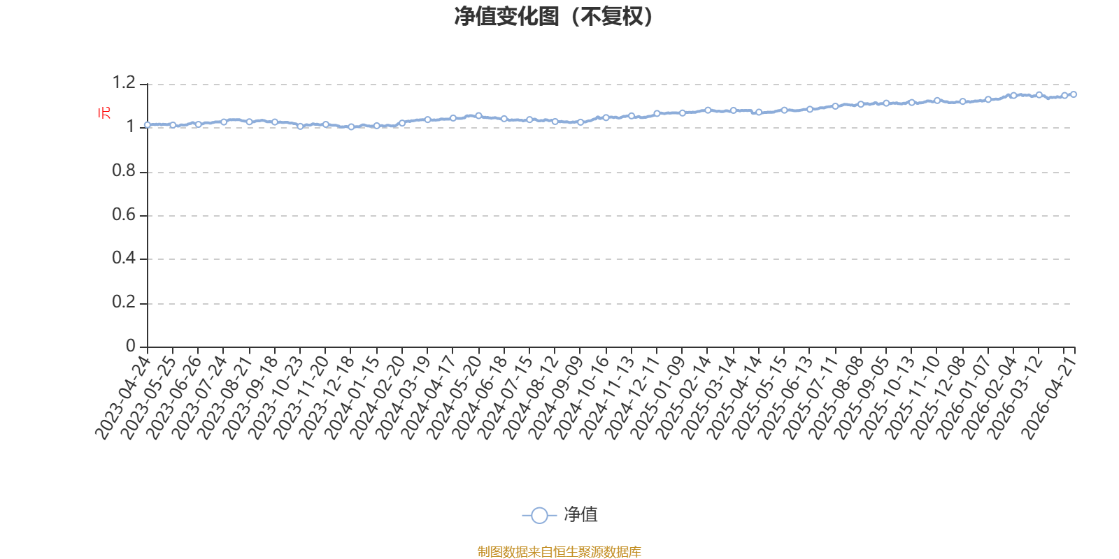 该基金属于偏债混合型基金。截至4月21日,单位净值为1.152元。基金经理是李中阳,目前管理的3只基金近一年均为正收益。其中,截至4月21日,易方达安心回馈混合A近一年复权单位净值增长率最高,达19.01%;易方达悦稳一年持有混合A最低,为7.8%。