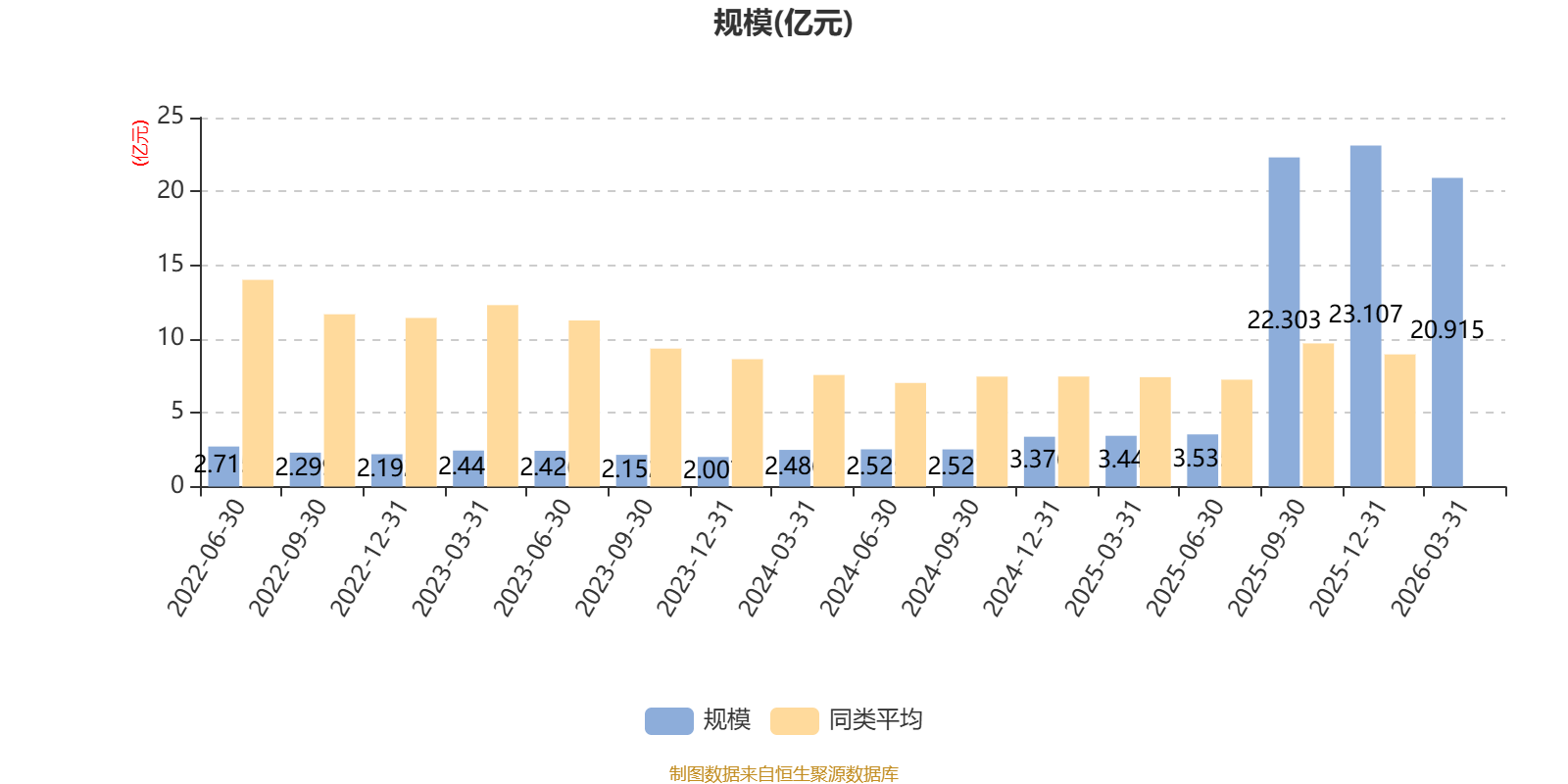 AI基金易方达成长动力混合A(014727)披露2026年一季报,第一季度基金利润2644.36万元,加权平均基金份额本期利润0.029元。报告期内,基金净值增长率为1.33%,截至一季度末,基金规模为20.92亿元。