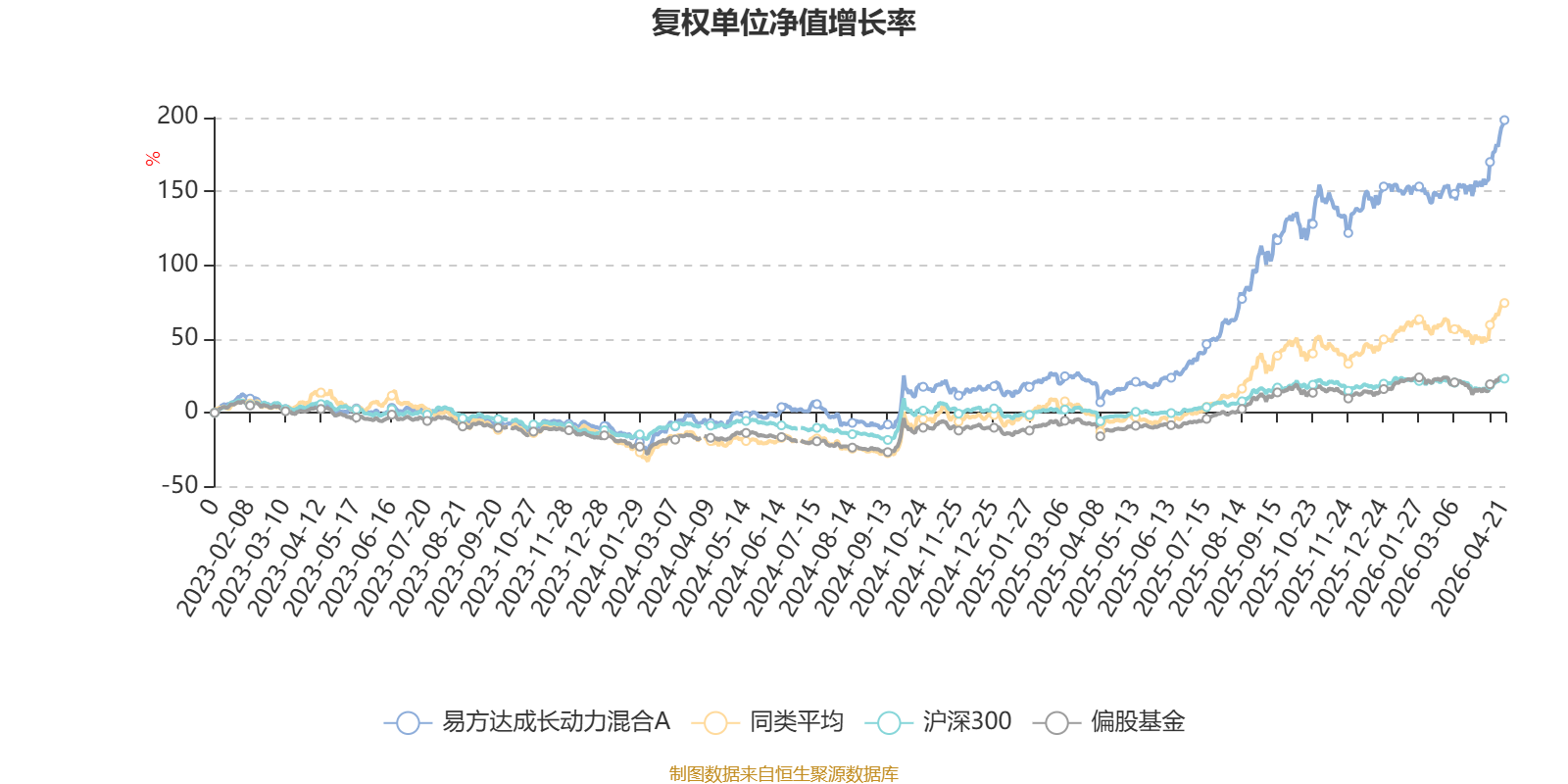 截至4月21日,易方达成长动力混合A近三个月复权单位净值增长率为18.61%,位于同类可比基金45/229;近半年复权单位净值增长率为29.17%,位于同类可比基金72/229;近一年复权单位净值增长率为158.56%,位于同类可比基金28/229;近三年复权单位净值增长率为194.14%,位于同类可比基金4/172。