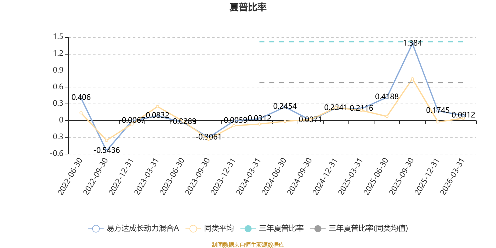 截至3月31日,基金近三年夏普比率为1.4185,位于同类可比基金1/168。