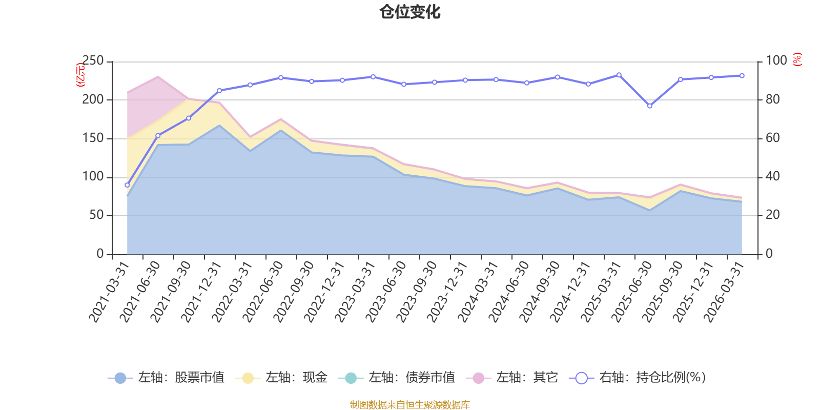 据定期报告数据统计,近三年平均股票仓位为89.39%,同类平均为86.82%。2025年一季度末基金达到93.03%的最高仓位,2021年一季度末最低,为35.96%。
