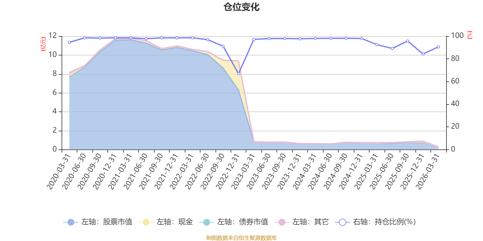 据定期报告数据统计,近三年平均股票仓位为94.82%,同类平均为84.07%。2022年一季度末基金达到98.58%的最高仓位,2022年末最低,为66.91%。