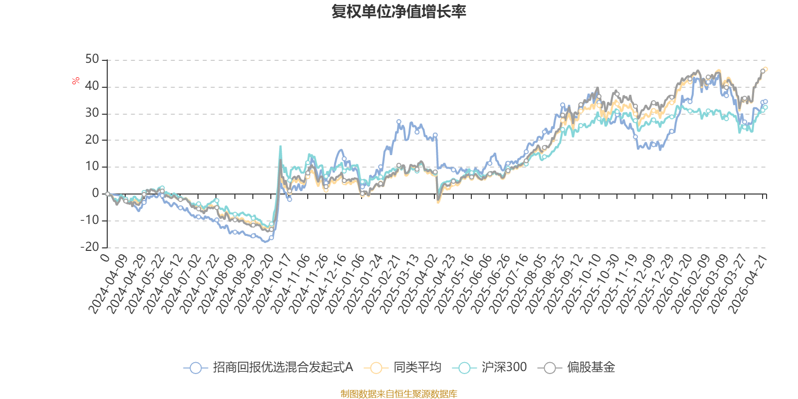 截至4月21日,招商回报优选混合发起式A近三个月复权单位净值增长率为-0.51%,位于同类可比基金373/689;近半年复权单位净值增长率为4.88%,位于同类可比基金429/689;近一年复权单位净值增长率为22.79%,位于同类可比基金486/685。