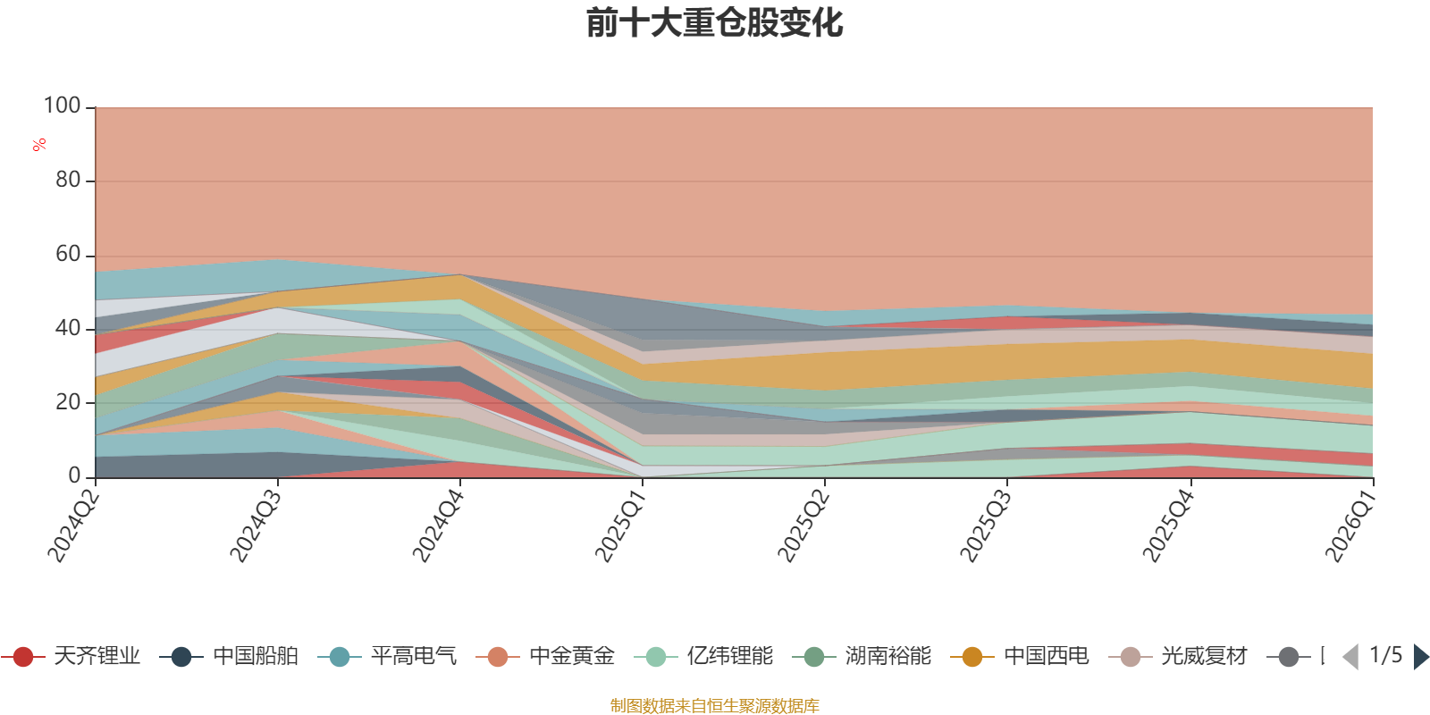 截至2026年一季度末,基金十大重仓股分别是宁德时代、阳光电源、特变电工、隆基绿能、华友钴业、赣锋锂业、迈为股份、亿纬锂能、中国核电、思源电气。