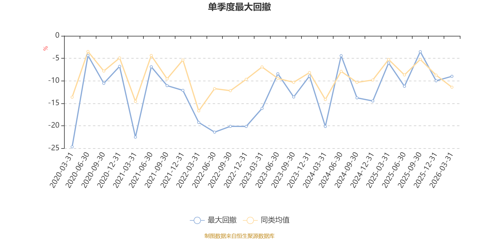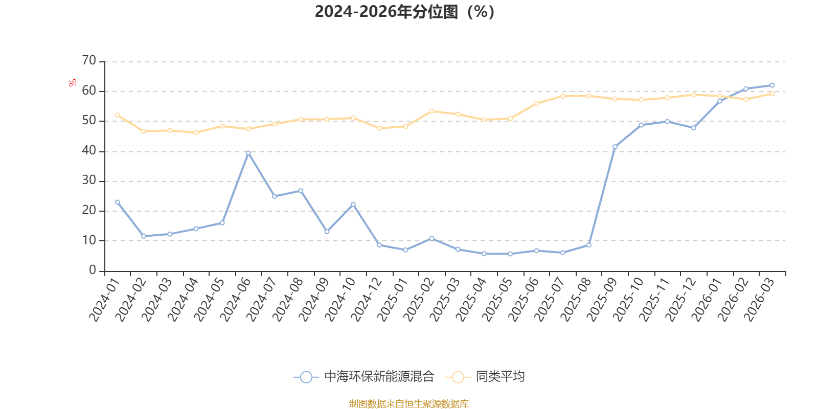 通过所选区间该基金净值增长率分位图,可以观察该基金与同类基金业绩比较情况。图为坐标原点到区间内某时点的净值增长率在同类基金中的分位数。