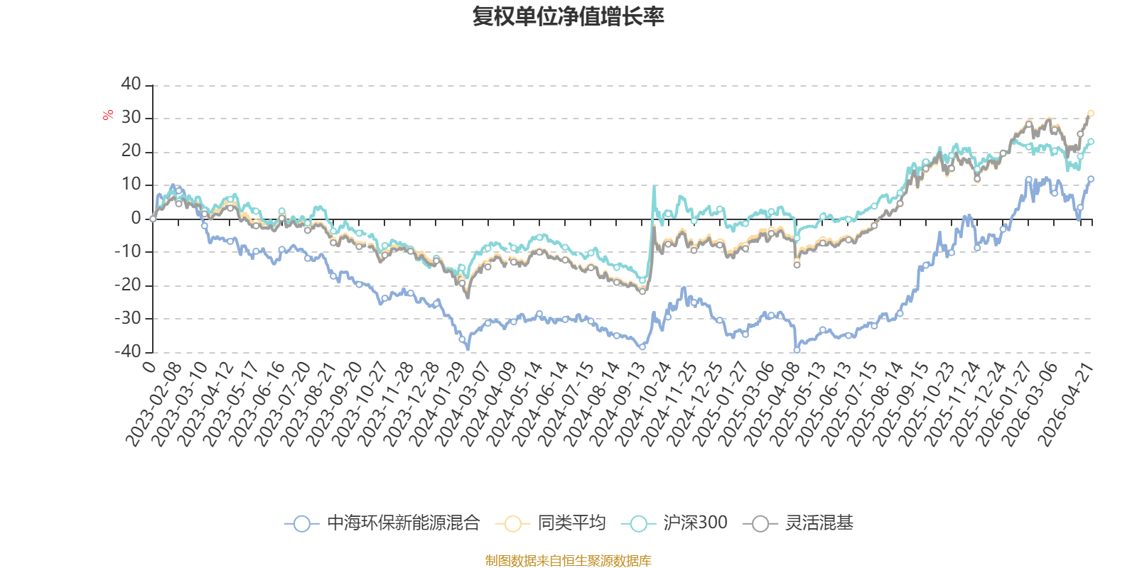 截至4月21日,中海环保新能源混合近三个月复权单位净值增长率为5.32%,位于同类可比基金289/1287;近半年复权单位净值增长率为23.50%,位于同类可比基金198/1286;近一年复权单位净值增长率为75.79%,位于同类可比基金165/1286;近三年复权单位净值增长率为22.41%,位于同类可比基金585/1286。