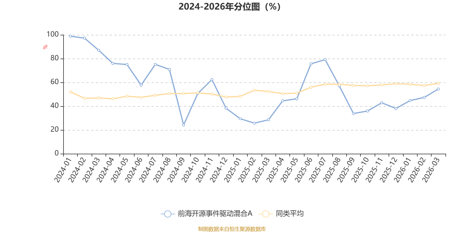 通过所选区间该基金净值增长率分位图,可以观察该基金与同类基金业绩比较情况。图为坐标原点到区间内某时点的净值增长率在同类基金中的分位数。