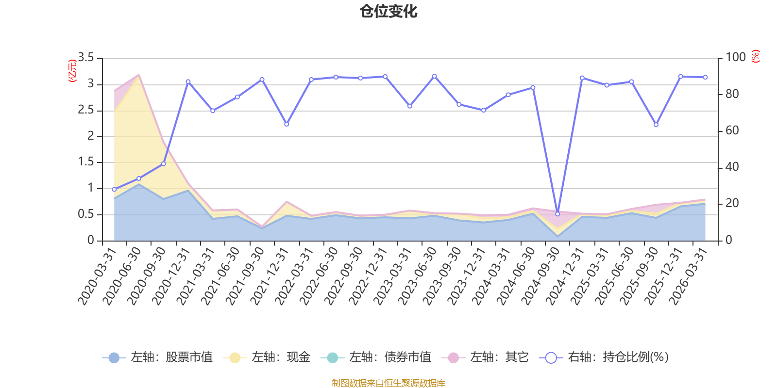 据定期报告数据统计,近三年平均股票仓位为76.65%,同类平均为72.55%。2023年上半年末基金达到90.18%的最高仓位,2024年三季度末最低,为14.66%。