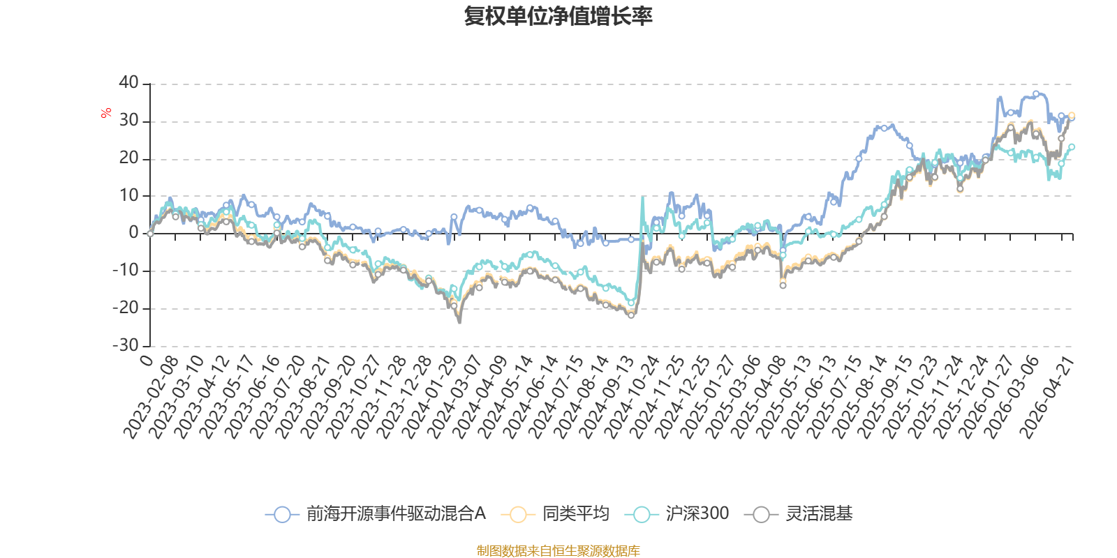 截至4月21日,前海开源事件驱动混合A近三个月复权单位净值增长率为-0.73%,位于同类可比基金810/1287;近半年复权单位净值增长率为10.68%,位于同类可比基金525/1286;近一年复权单位净值增长率为28.15%,位于同类可比基金697/1286;近三年复权单位净值增长率为23.18%,位于同类可比基金573/1286。
