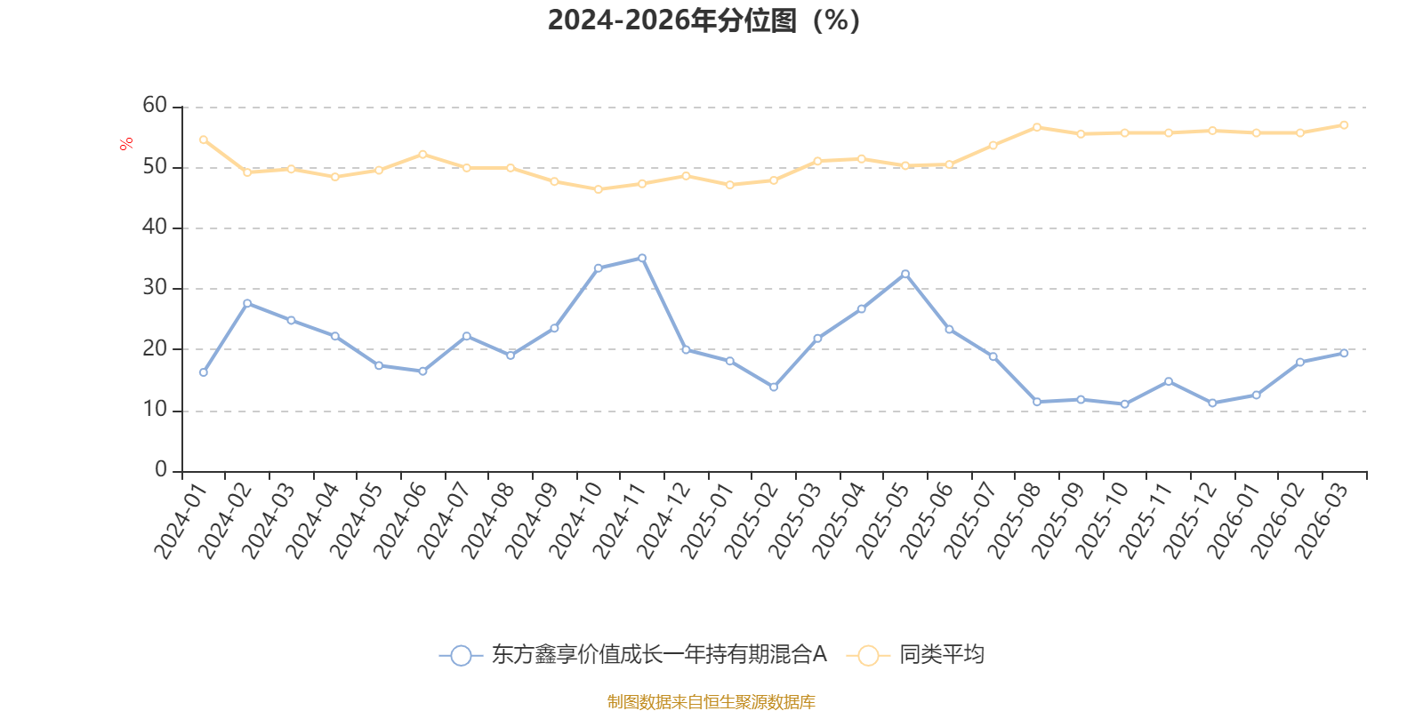 通过所选区间该基金净值增长率分位图,可以观察该基金与同类基金业绩比较情况。图为坐标原点到区间内某时点的净值增长率在同类基金中的分位数。