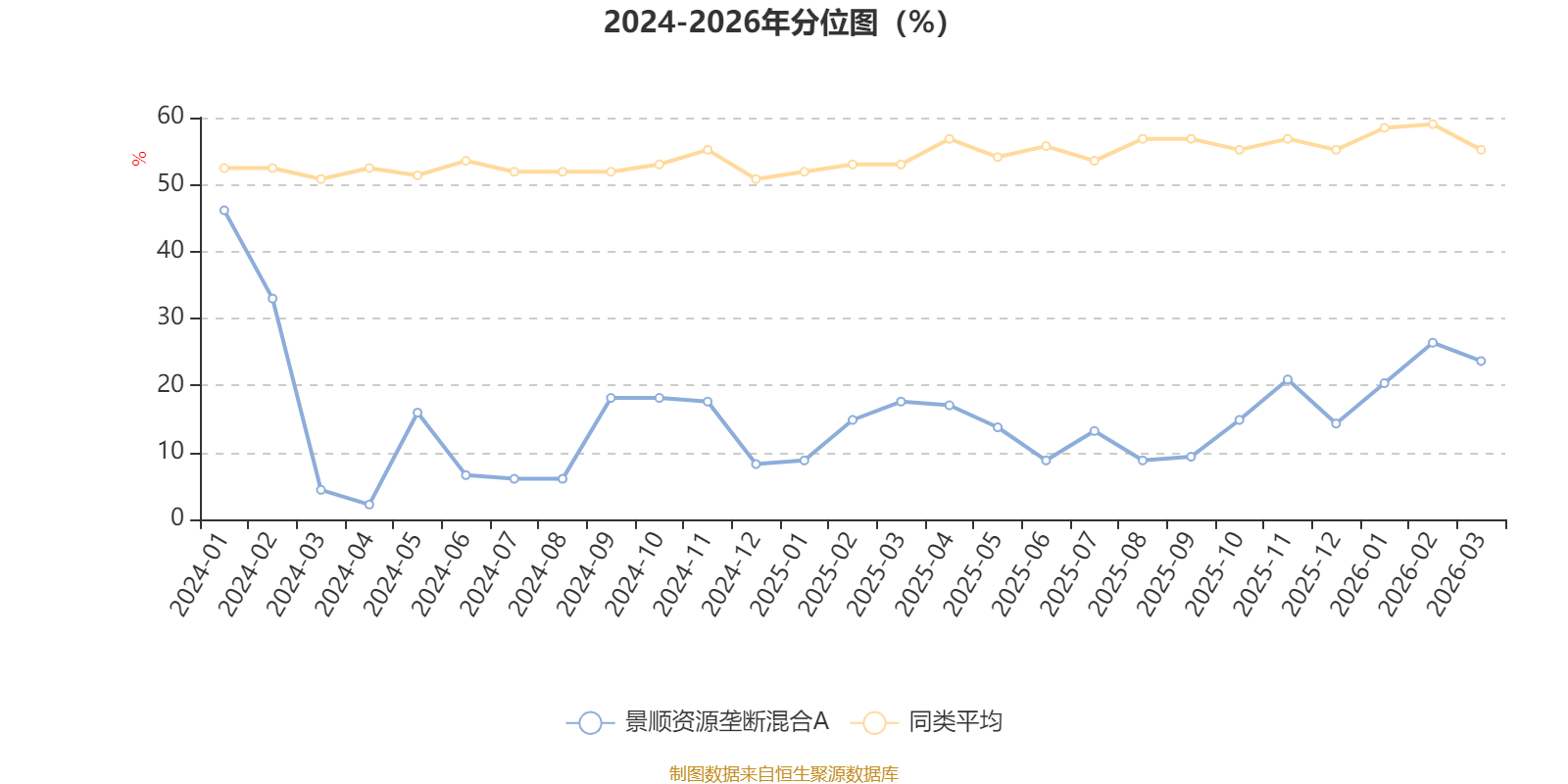 通过所选区间该基金净值增长率分位图,可以观察该基金与同类基金业绩比较情况。图为坐标原点到区间内某时点的净值增长率在同类基金中的分位数。