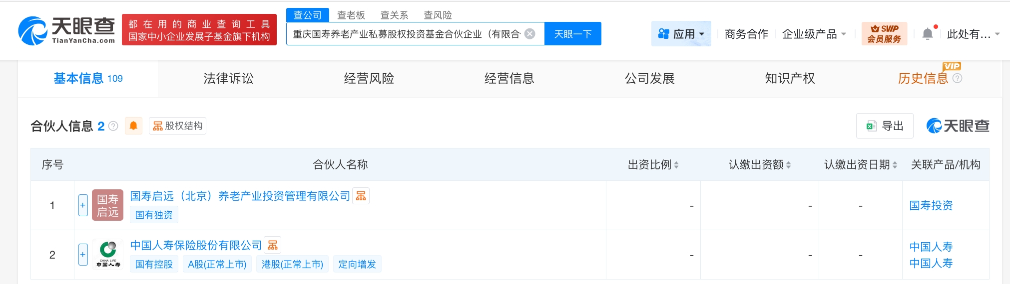 合伙人信息显示,该基金由中国人寿、国寿启远(北京)养老产业投资管理有限公司共同出资。