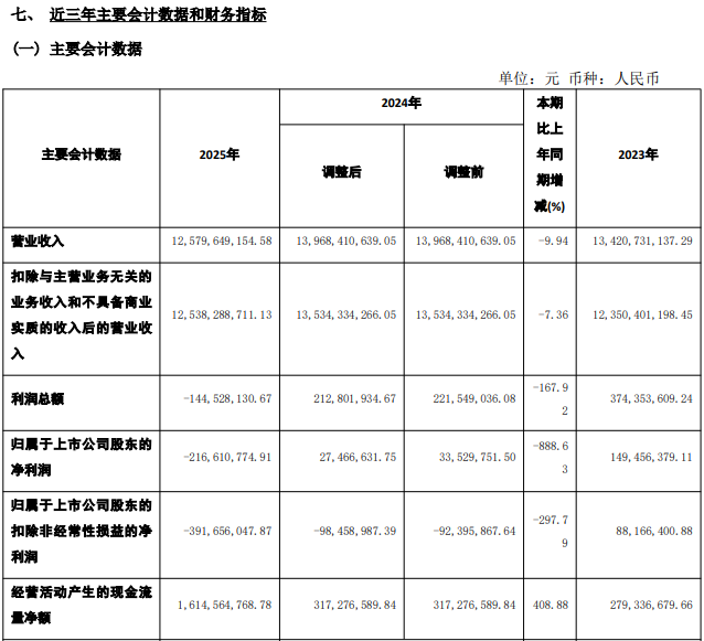 4月21日晚间,神马股份(600810)公布2025年年报,公司营业收入为125.8亿元,同比下降9.94%;归母净利润亏损2.17亿元;扣非归母净利润自上年同期亏损9240万元变为亏损3.92亿元,亏损额进一步扩大;经营现金流净额为16.15亿元,同比增长408.88%。