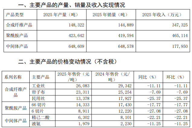 4月21日晚间,神马股份还披露了2025年年度主要经营数据公告。公告显示,2025年,公司主要产品售价同比全面下调。