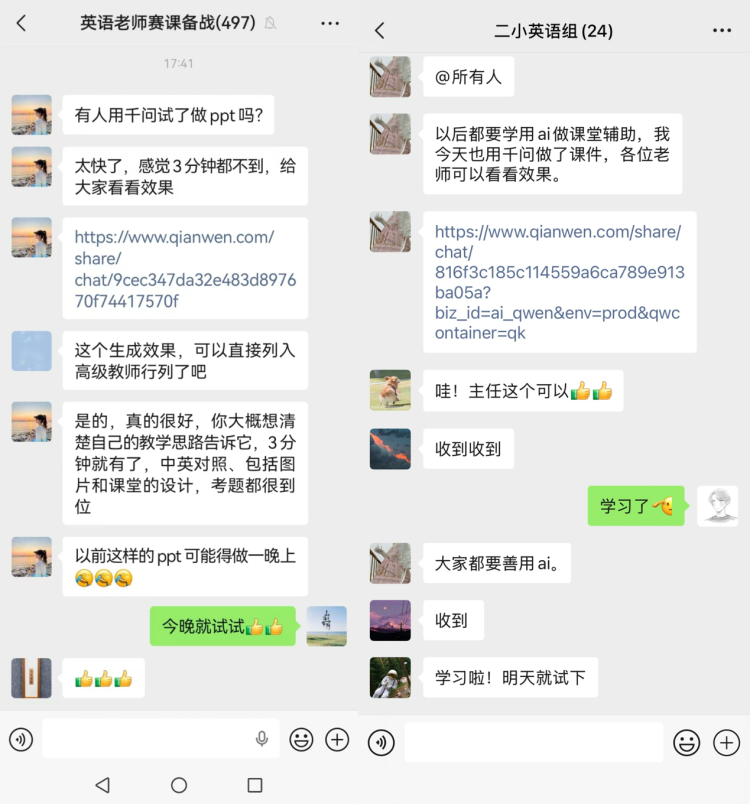 这一功能意外受到英语老师欢迎,不少英语老师在社交平台和教师群里自发“种草”,安利如何用千问把想好的教学设计“变”成一份完整教学PPT。