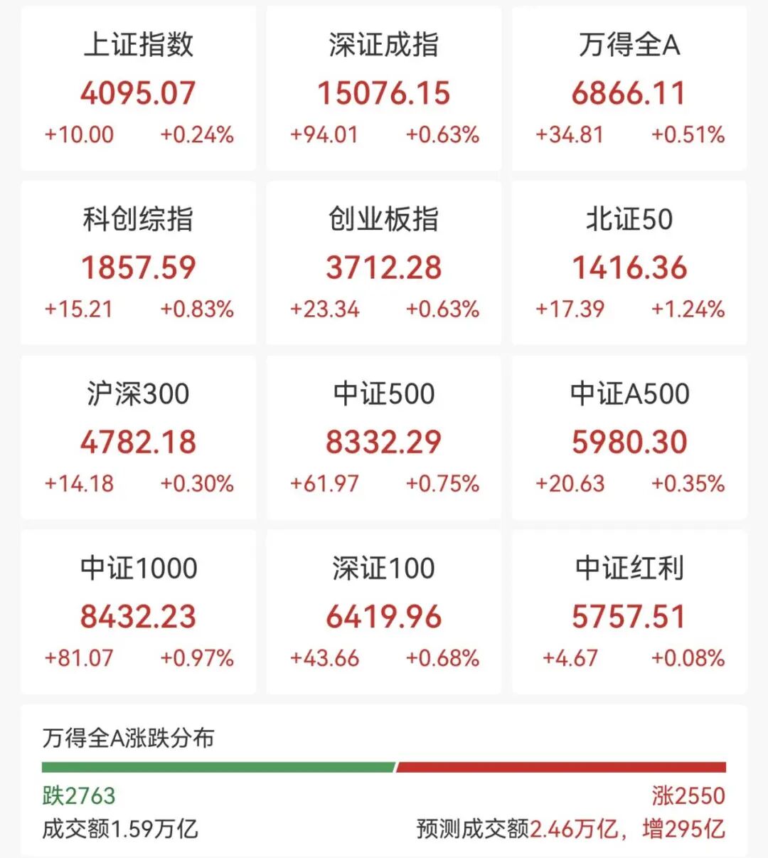 4月22日上午,A股主要指数震荡拉升,沪指逼近4100点关口。截至午间收盘,沪指涨0.24%,深成指涨0.63%,创业板指涨0.63%,科创综指涨0.83%。