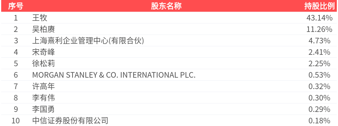 公司股东户数为1.35万户,前十大股东持股数量为6540.62万股,占总股本比例为65.41%,前十大股东持股情况如下: