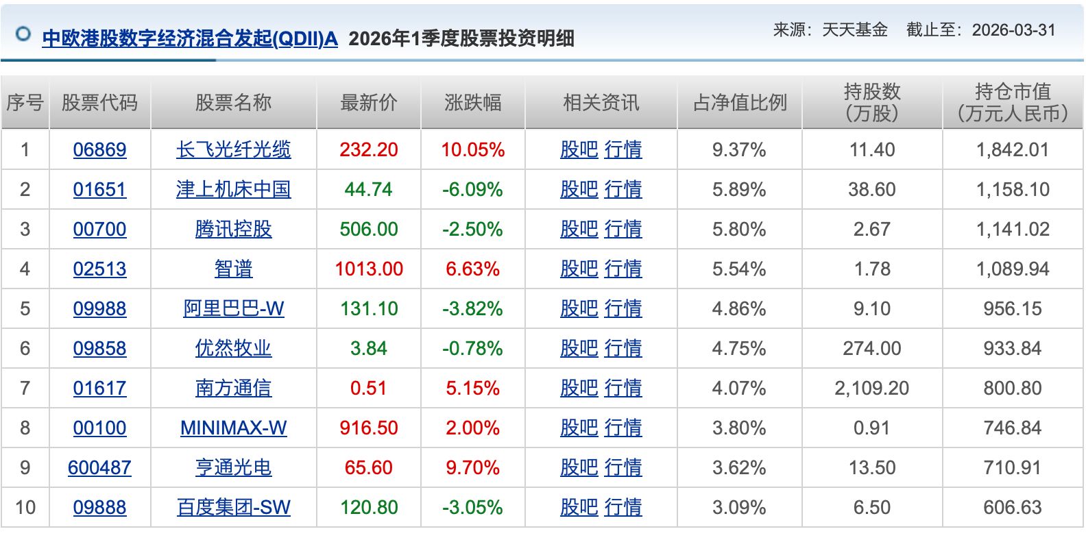 该产品今日公布的一季报显示,截至3月31日,长飞光纤光缆为其第一大重仓股,持仓占比达9.37%;此外,另一只大牛股——目前港股唯一的千元股智谱,为其第四大重仓股,持仓占比5.54%。此外,Minimax为其第八大重仓股,持仓占比3.8%。